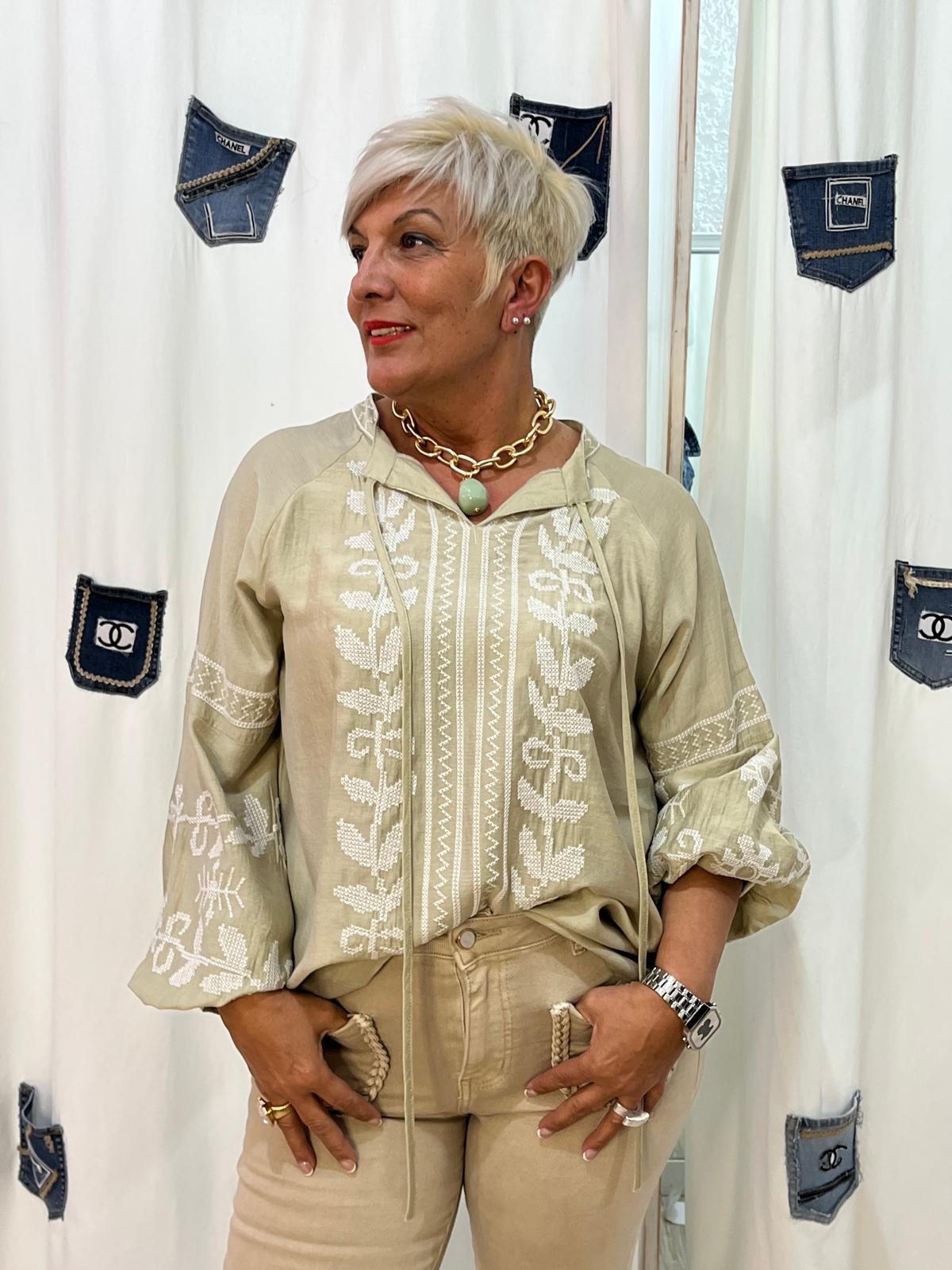 Blusa campesina y con punto de cruz
